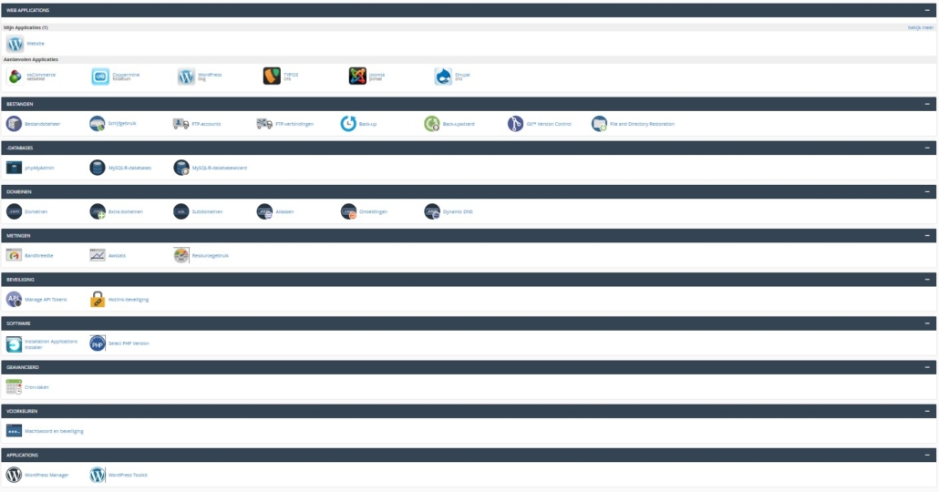 Hier kun je applicaties zoals WordPress installeren en beheren (zie ook Installatron gebruiken via cPanel).