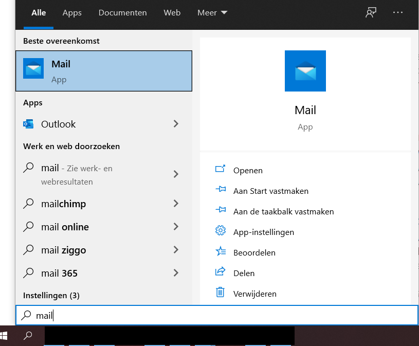 Open de Mail-app door op het menu Start van Windows te klikken en Mail te kiezen.