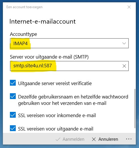 Server voor inkomende e-mail: imap.site4u.nl
