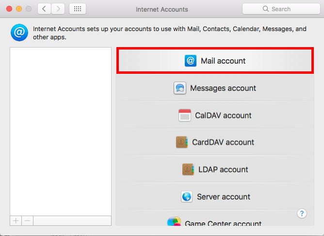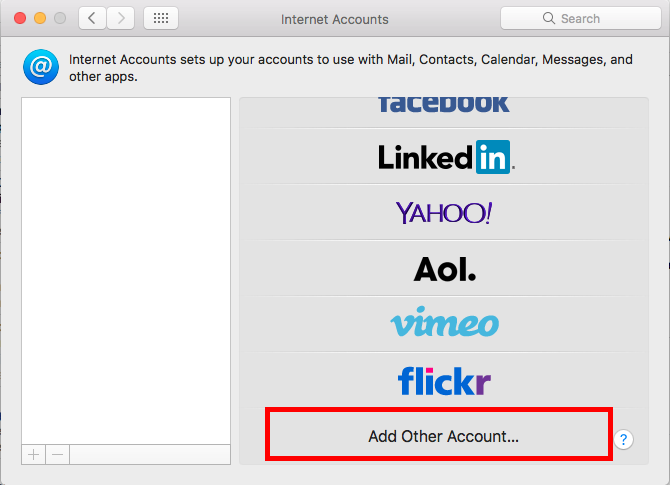 4. Klik op “Add Other Account”, waarna het volgende scherm verschijnt: