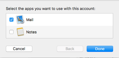 9. Zorg dat Mail is aangevinkt en klik op “Done”