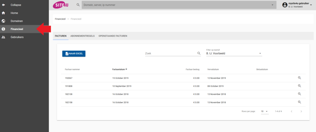 In alle drie de schermen kun je eenvoudig alle regels exporteren naar een Excel bestand door de knop “naar Excel” aan te klikken.