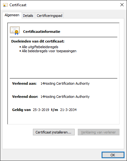 - Een 14hosting root-certificaat en aanpassingen Windows 10 beveiliging