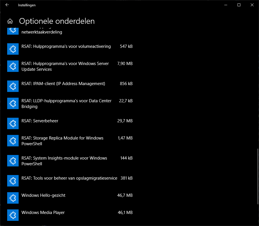 Voor deze instructies heb je minimaal “RSAT:Serverbeheer” nodig, maar andere RSAT tools kunnen ook nodig zijn.