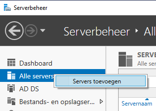Eenmaal geïnstalleerd kun je deze tool openen en servers toevoegen. Klik daarvoor met de rechtermuisknop op “Alle servers” en kies voor “Servers toevoegen“.