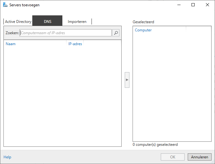 Omdat je Windows desktop thuis waarschijnlijk niet op het domein is aangemeld, voegen we servers toe via DNS.